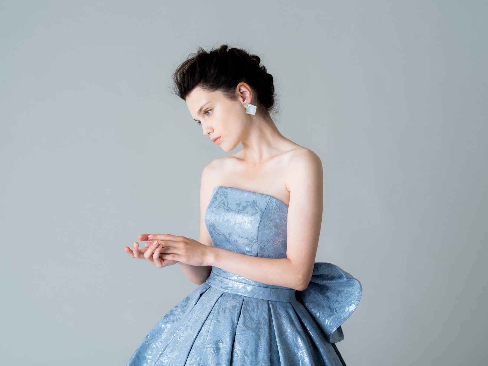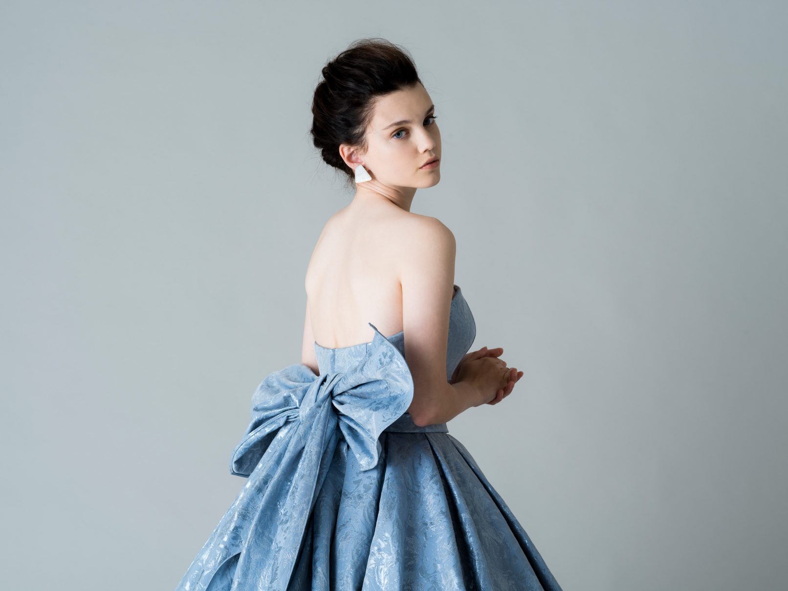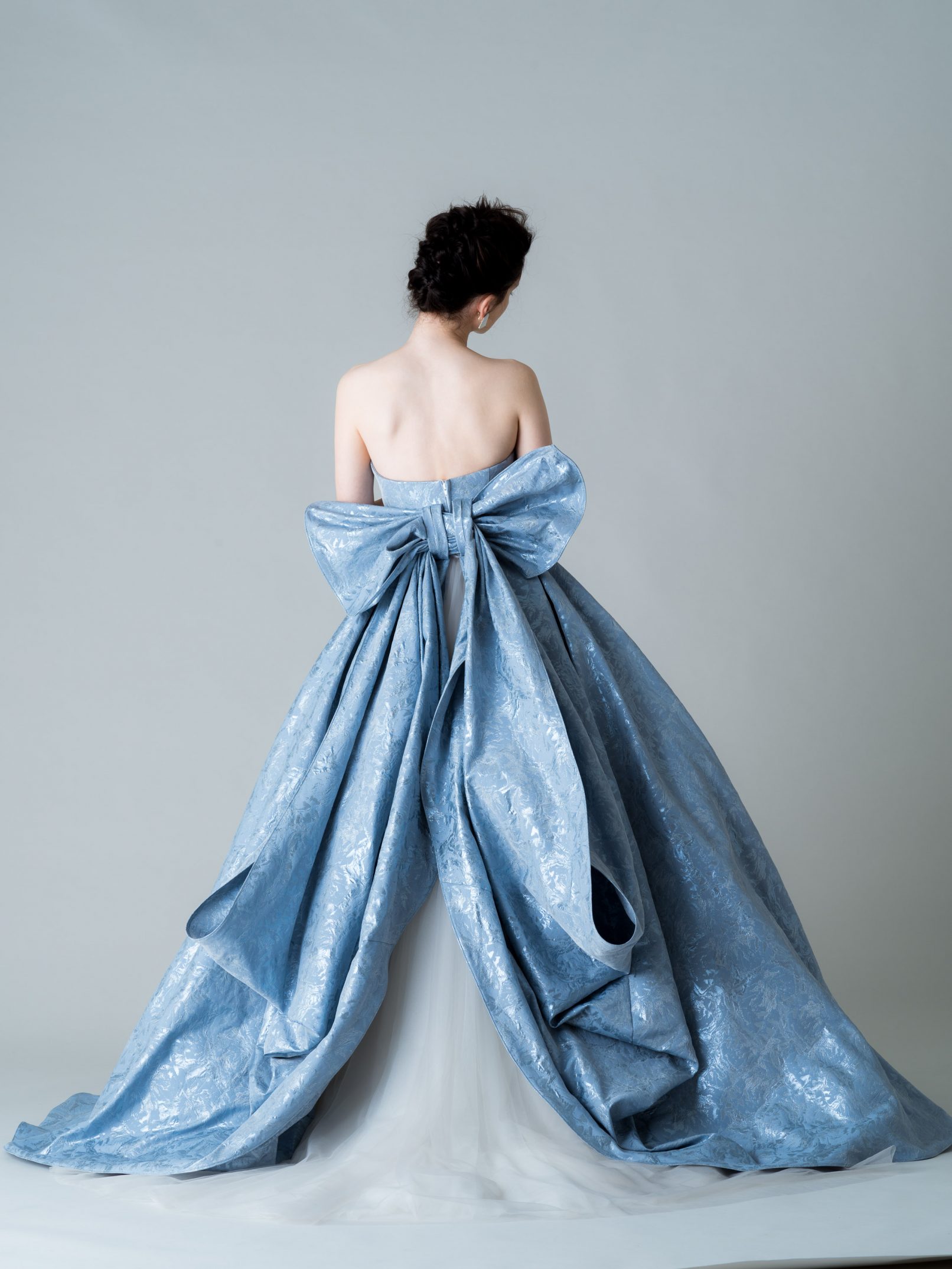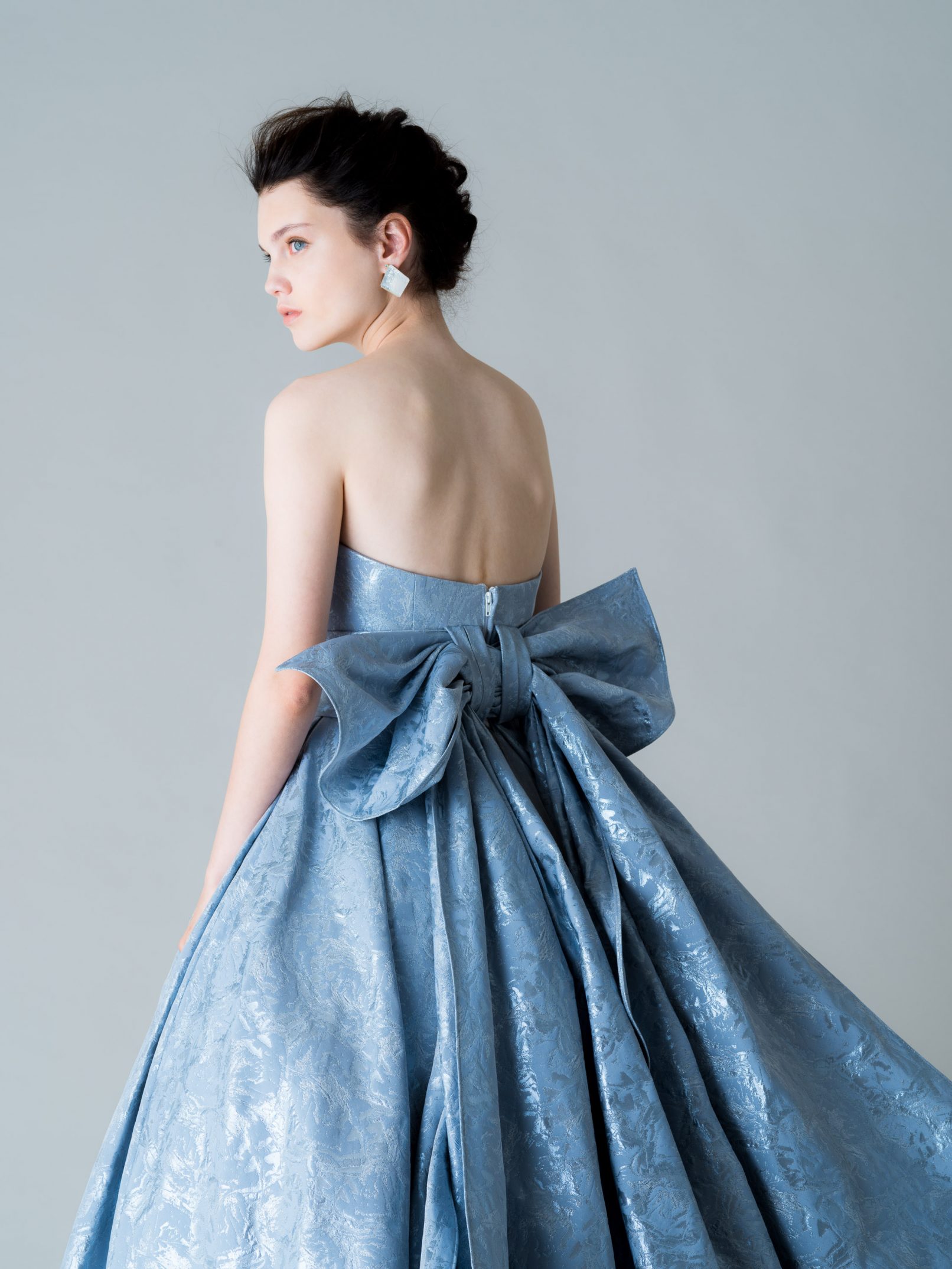 立体的なドレープリボンのバックスタイルが美しいドレス