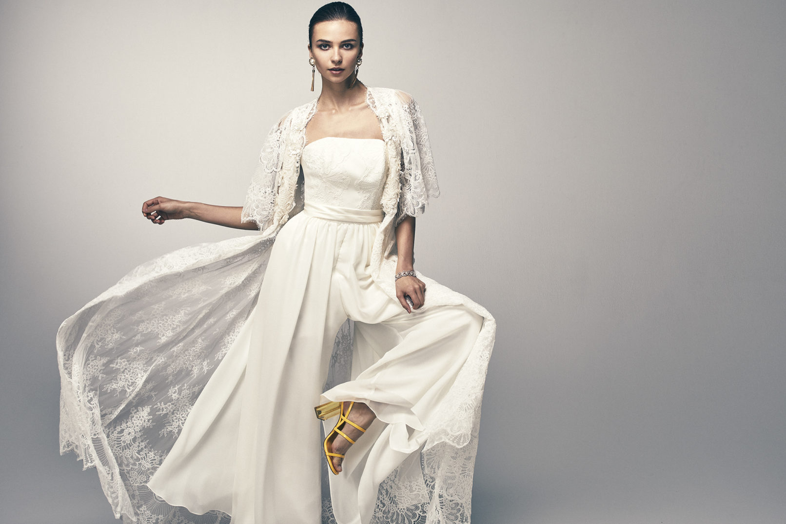 ベースドレスはさりげないレース感と、パンツスタイルが映える今の時代に相応しいドレスです