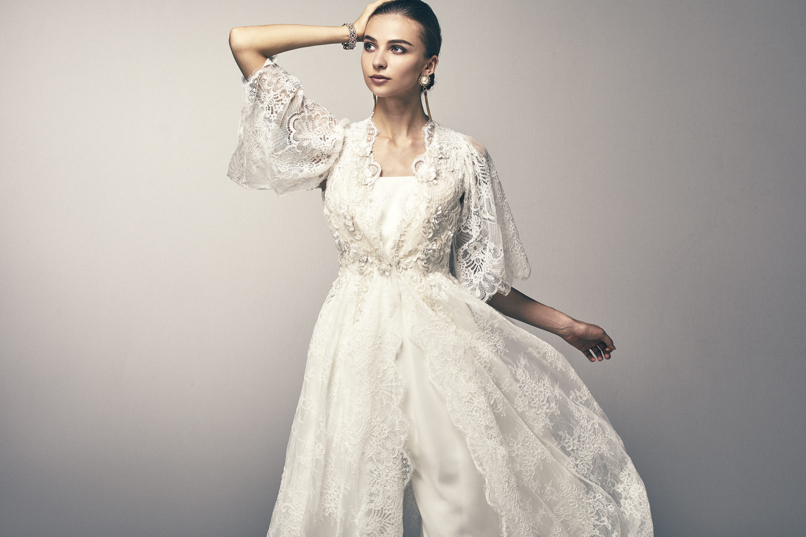 総レースに立体的なインポートビジューを掛け合わせたガウンを羽織るワンランク上のおしゃれウエディング